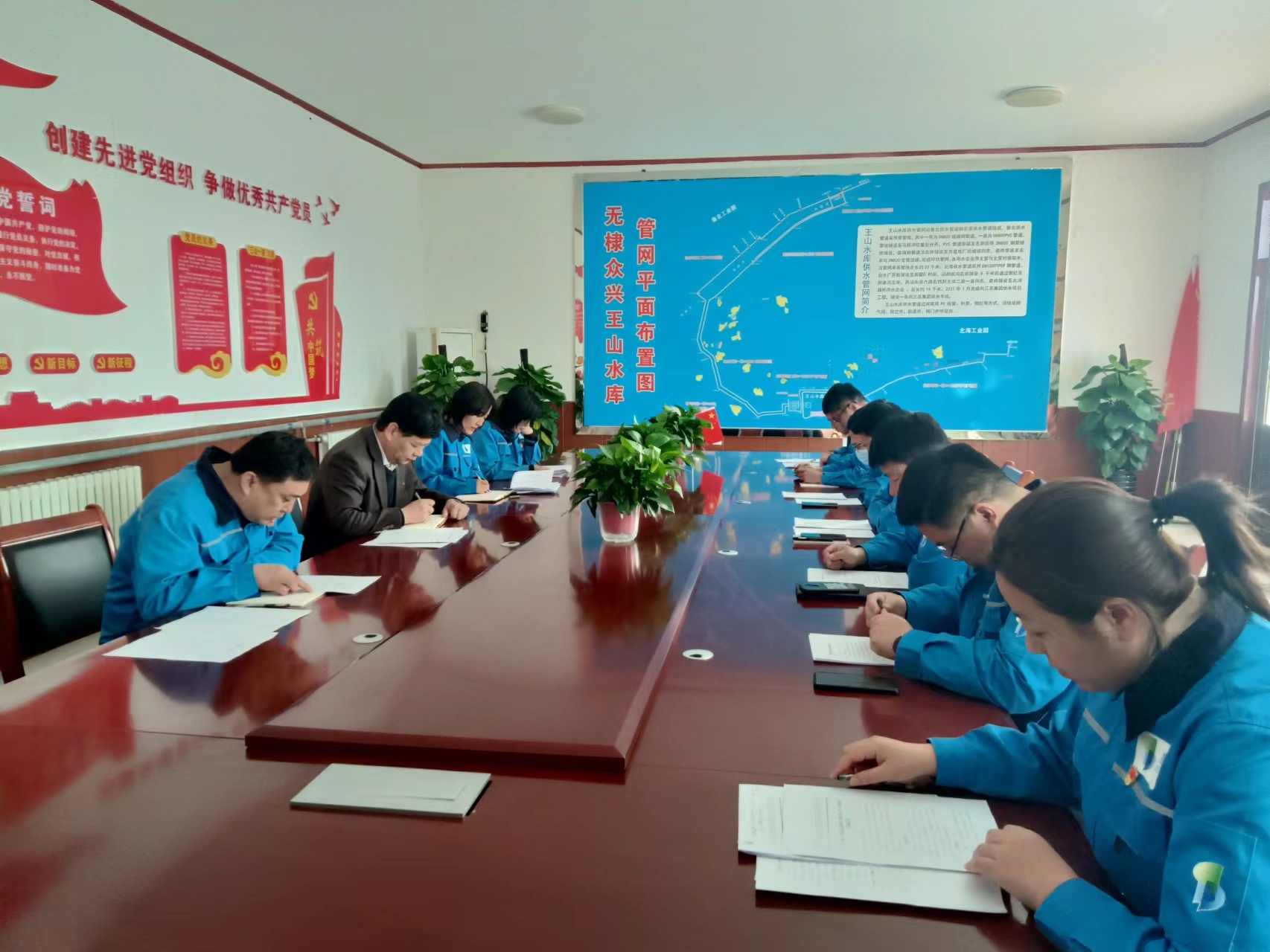 海陽眾興水務有限公司在簽訂《廉潔從業承諾書》活動中,通過觀看警示教育片《褪色的人生》,引導員工深刻認識“廉潔是執行的底線”。